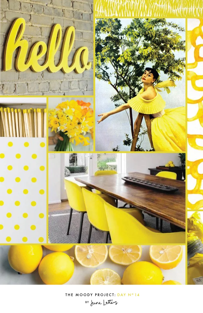 The theme of this Moody Board is pretty obvious. Today is all about yellow. I have to admit I am not really a yellow girl, I actually can't think of any yellow items in my closet. But I have recently noticed that this sunny hue has been popping up on Pinterest A LOT - and I am thinking I may have to reassess my yellow stance. After all lemons are my favorite food! So I hope you enjoy this little ray of sunshine on a rainy day (at least in SF!).
