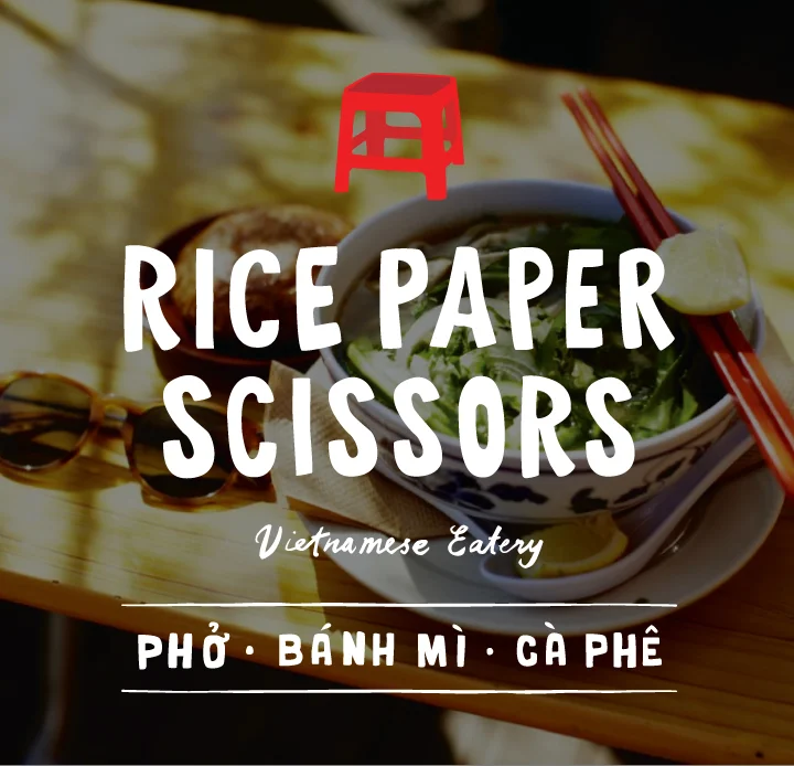 "Inspired by the sidewalk dining and street food we experienced in Vietnam, we wanted to recreate the experience here in San Francisco — complete with small tables, even smaller stools, fresh Vietnamese condiments, Cambodian pop music, and a rotating menu of Vietnamese comfort foods" - Rice Paper Scissors website.