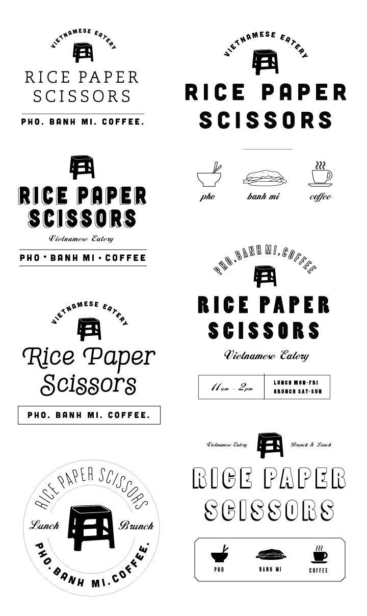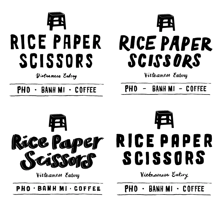 Rice Paper Scissors was created by my dear high school friend Valerie Luu and her partner in crime, Katie Kwan. They have been hustling for 3 years now, and have built up quite the following. Their success as a pop-up mainstay, led them to getting their own semi-permanent space at a music venue right near my apartment in the Mission. They are currently serving food almost everyday, lunch Tuesday-Friday, and brunch on the weekends. A few months ago Valerie asked me to help them create a window sign for their restaurant to attract more people walking along the street. I of course gladly wanted to help! The little red stool that is now their logo mark, was actually inspired by a drawing I made for he poster of their first pop-up together ever. You can see we have some history together :)