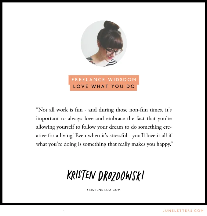Not all work is fun - and during those non-fun times, it's important to always love and embrace the fact that you're allowing yourself to follow your dream do something creative for a living! Even when it's stressful - you'll love it all if what you're doing is something that really makes you happy.