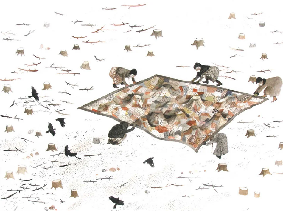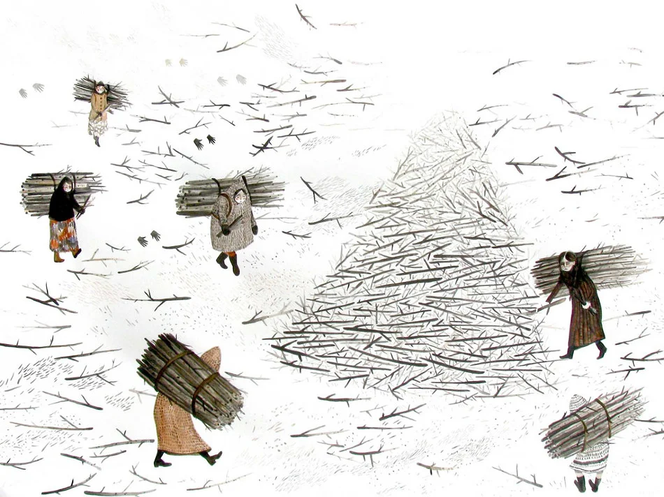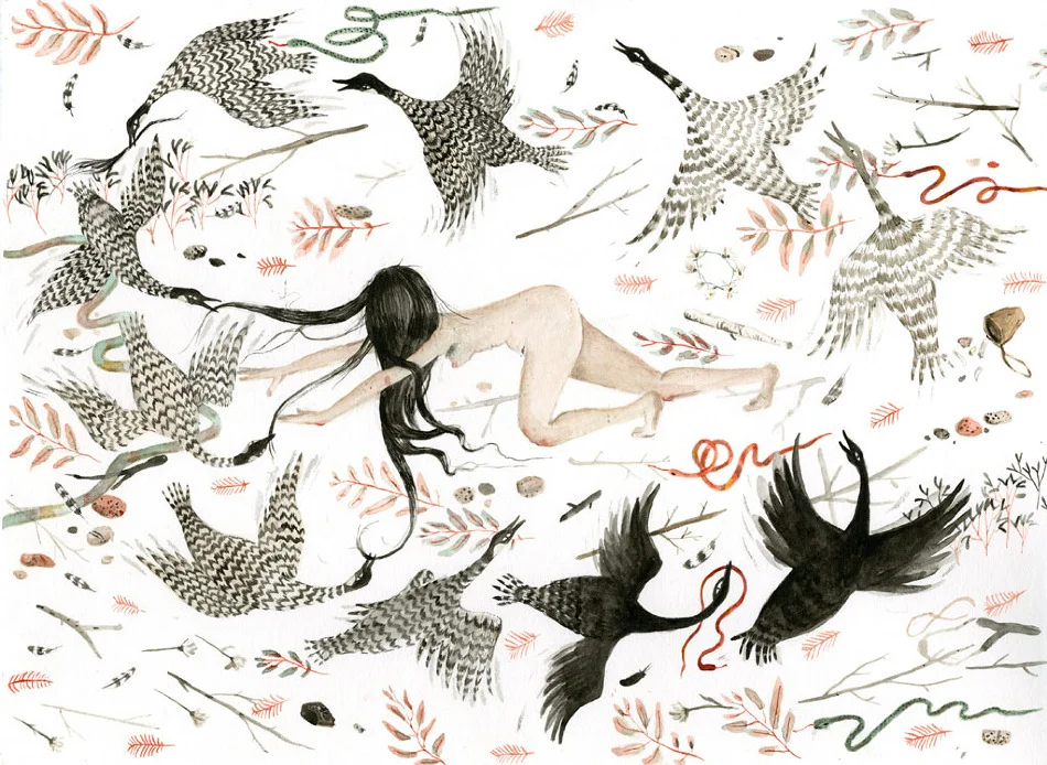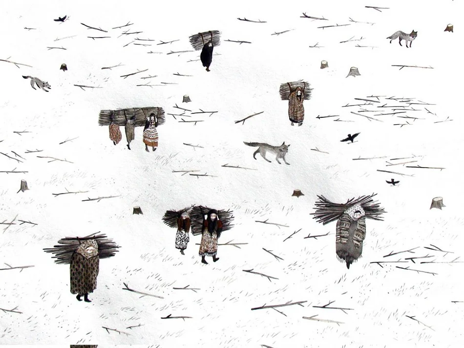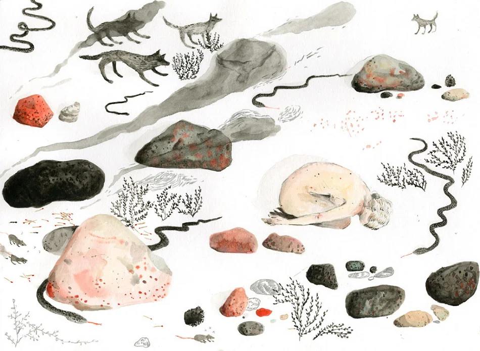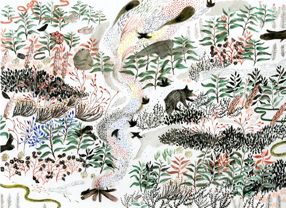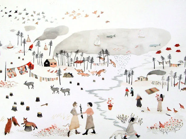 I recently discovered Sarah Burwash on Pinterest - and I am seriously in love. She reminds me a lot of Amy Cutler (another one of my favorite artists). I love her sparse yet detailed landscapes, story-book style characters, and minimal but evocative color palette. I went a little crazy collecting her images - hope you enjoy!