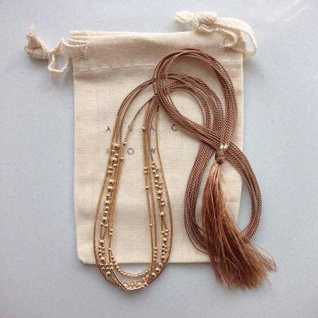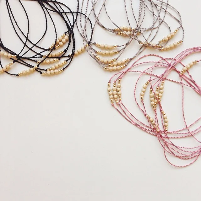 Tiny Shop is back! I started following Christine of Abacus Row on Instagram several months ago and quickly became obsessed with her gorgeously minimal jewelry designs. I love her simple yet evocative combination of silky thread and gold beads. The designs are subtle but so sophisticated! I had the pleasure of meeting Christine at a Makers Market and she is truly one sweet gal.
